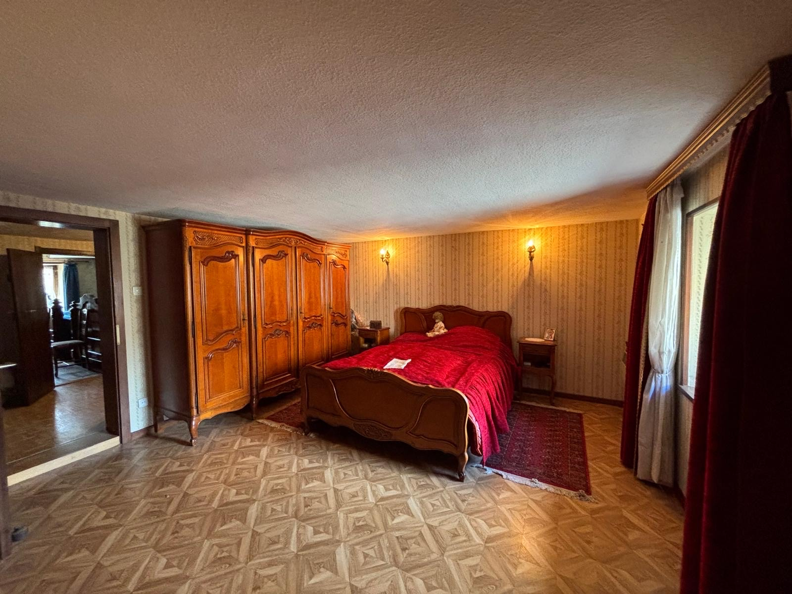 - à l’étage : quatre chambres et une salle de bain.